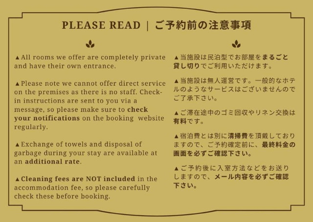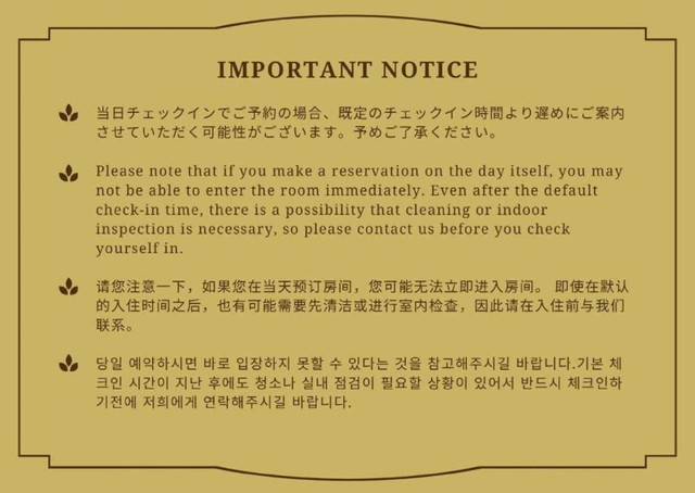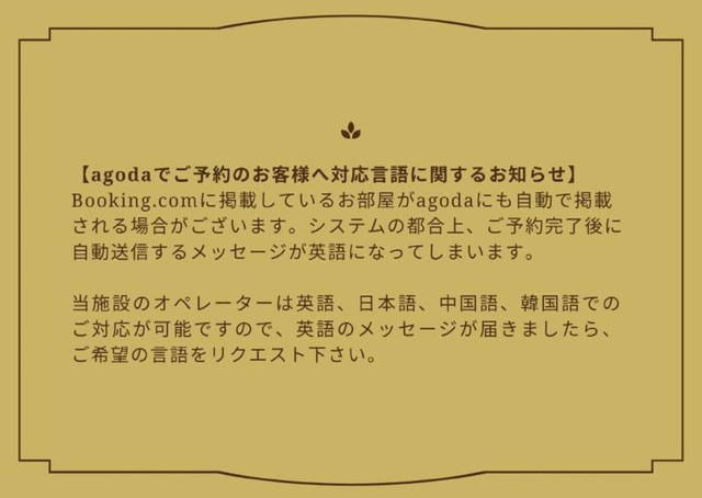 ご予約済のゲスト様はご利用の予約サイトを通じてのご連絡をお願いいたします。